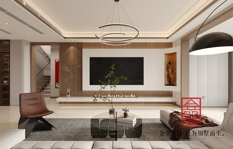衡水漢王府別墅裝修現(xiàn)代法奢風(fēng)格客廳效果圖