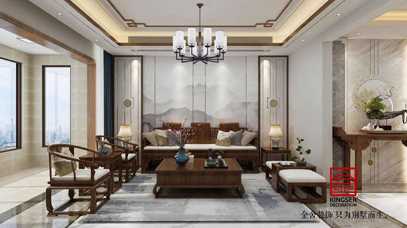 榮盛華府新中式風(fēng)格客廳裝修效果圖