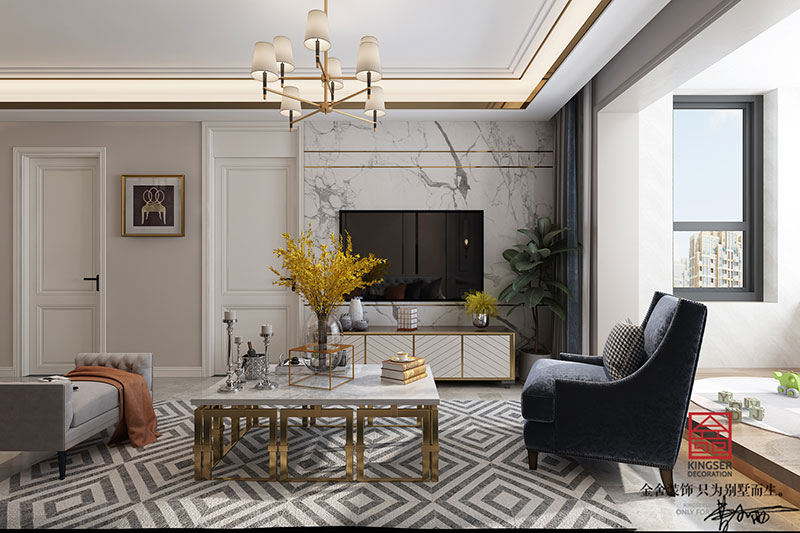 德賢公館裝修-輕奢風(fēng)格-客廳