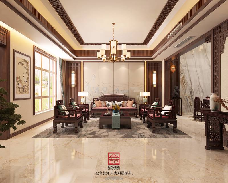 紅石原著中式風(fēng)格別墅裝修客廳效果圖