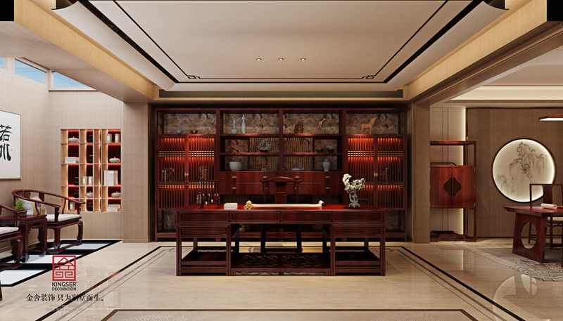 紅石原著中式風格別墅裝修書房效果圖