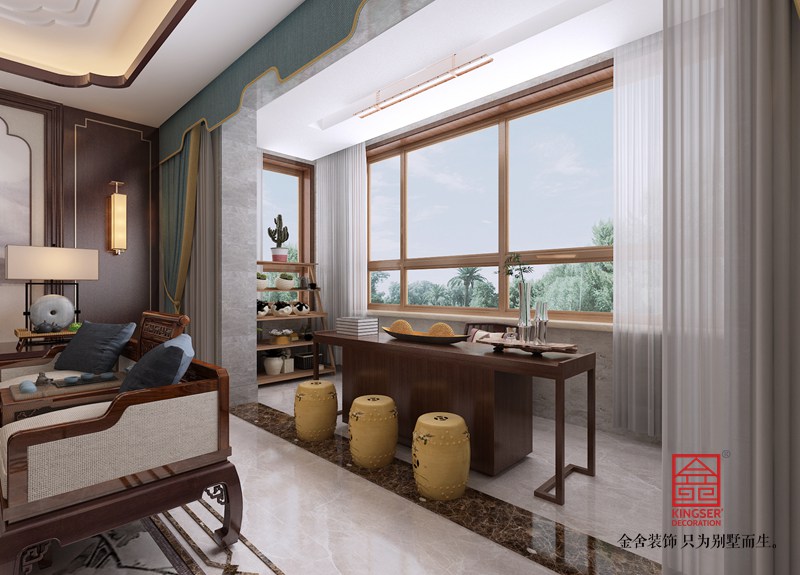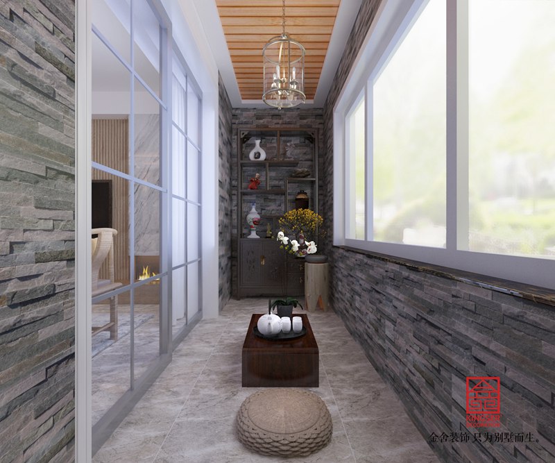 保利拉菲公館172平米裝修-新中式風(fēng)格-陽(yáng)臺(tái)
