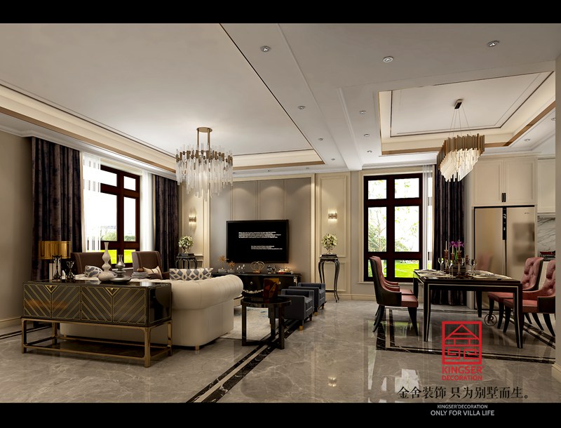 西山林語下疊裝修260平米美式輕奢風(fēng)格效果圖