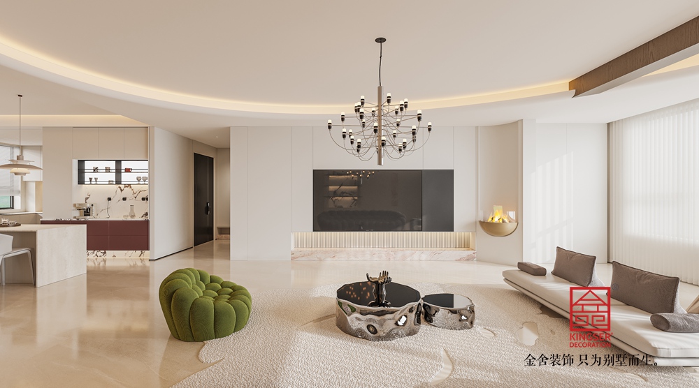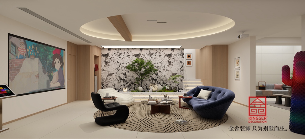 沙河自建別墅400平米現(xiàn)代簡約風格裝修-客廳