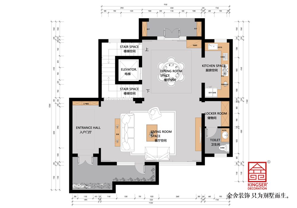 1、將玄關(guān)走廊,客廳與餐廳相連弱化空間劃分,增大客廳感官上的空間擴大化。