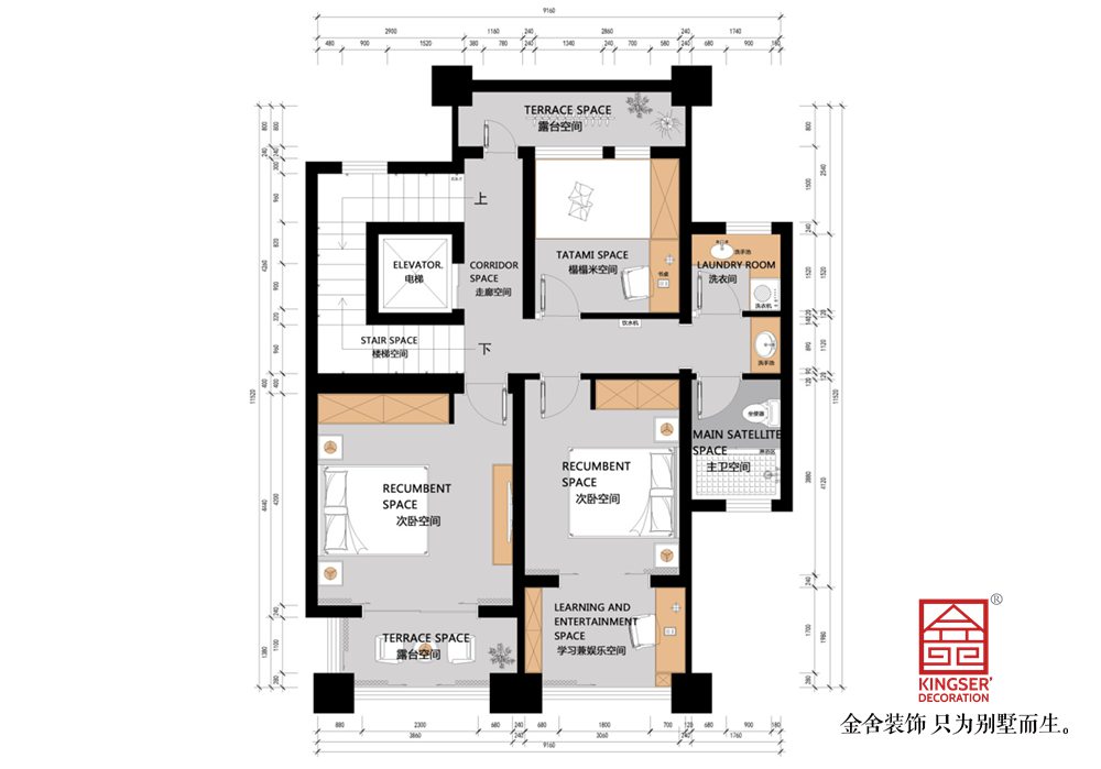 1、把挑空劃分成一個臥室陽臺一分為二,陽臺進行綠植美化和學習與娛樂空間,可作為私人的綠色空間增添喜歡的綠植。