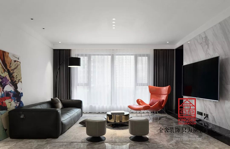 藝術(shù)是多層次的,同樣對于本案來說也是一樣。風(fēng)格多角度,既有對于色彩的感知與暢想又有黑白灰存在的百搭色調(diào),藝術(shù)的色彩不是單調(diào)的,同樣家居也是一樣。一點罌粟紅,一筆寶石蘭,濃重但是純凈,將冷靜的空間效果煥發(fā)出一種沉溺藝術(shù)殿堂的興奮感覺。