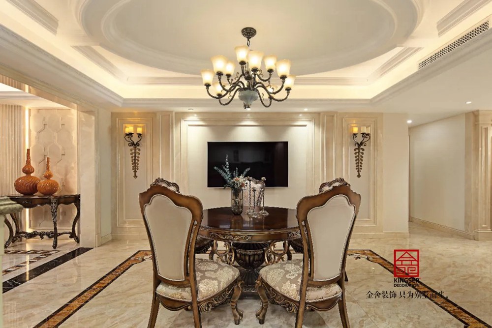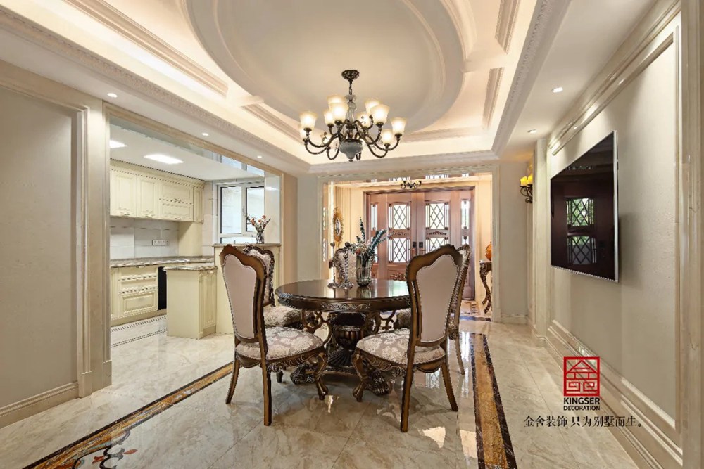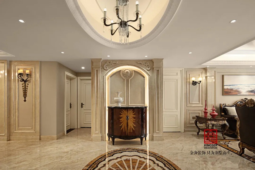 此案例為石家莊金舍裝飾-御河上院220平米歐式風(fēng)格裝修實景。對于歐式的風(fēng)格來說,元素的運用大部分出自于之前的宮廷,從凡爾賽宮到各種歐倫古堡,近千年來的輝煌締造了不斷衍生的文明和欣欣向榮的文化。