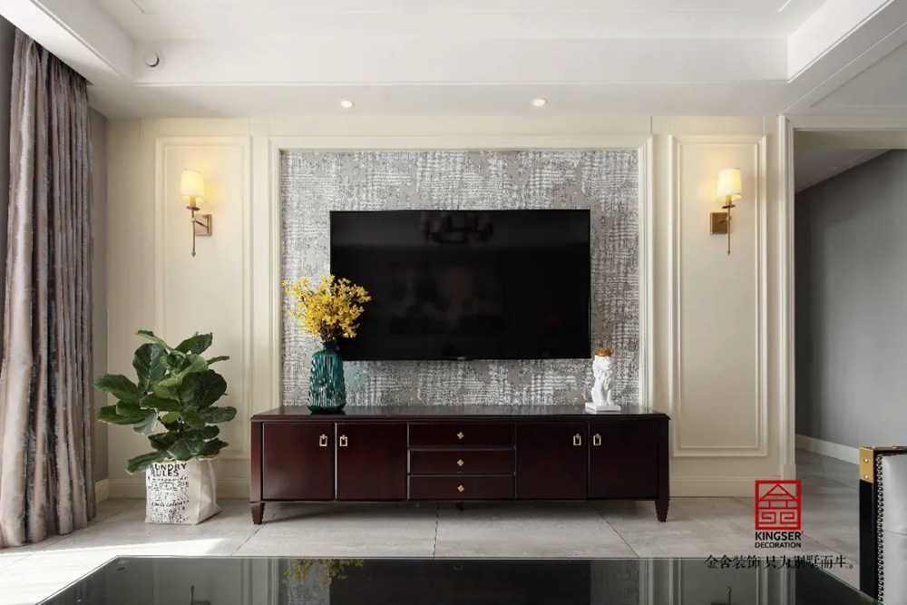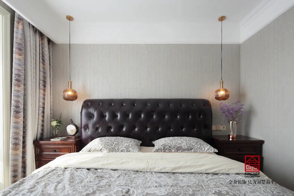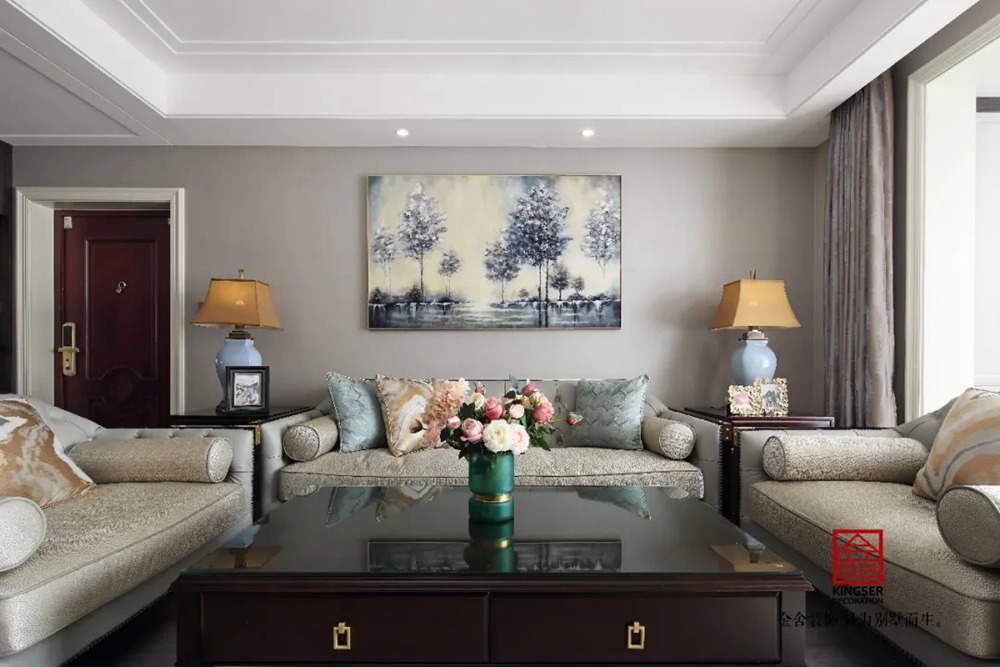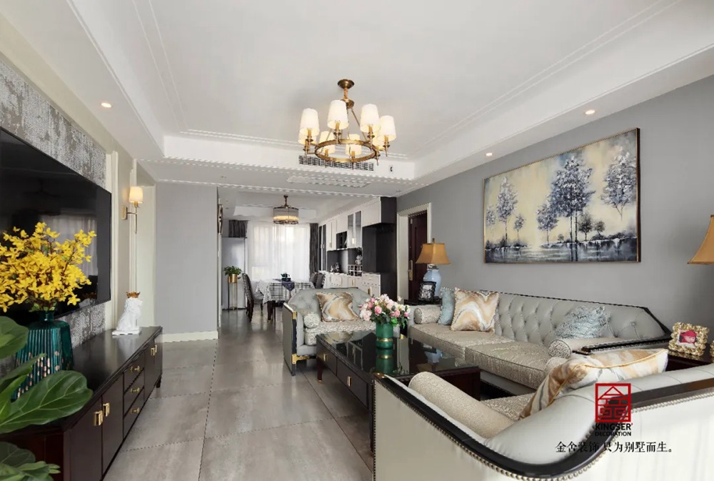 此案例為石家莊金舍裝飾-保利拉菲公館170平米美式風(fēng)格裝修實(shí)景。簡美風(fēng)格就是既有西方元素,又具有強(qiáng)烈的現(xiàn)代時(shí)代感元素。每個(gè)設(shè)計(jì)里都需要軟裝上的搭配去展現(xiàn)出不同的視覺效果。從空間的色彩來講,簡美式風(fēng)格的設(shè)計(jì)是以淺色為主、深色為輔的設(shè)計(jì)理念為原則。為了避免大范圍采用鮮艷靚麗的顏色,用清凈時(shí)尚的裝修設(shè)計(jì)維持住整個(gè)空間里的大氣優(yōu)雅的感覺。