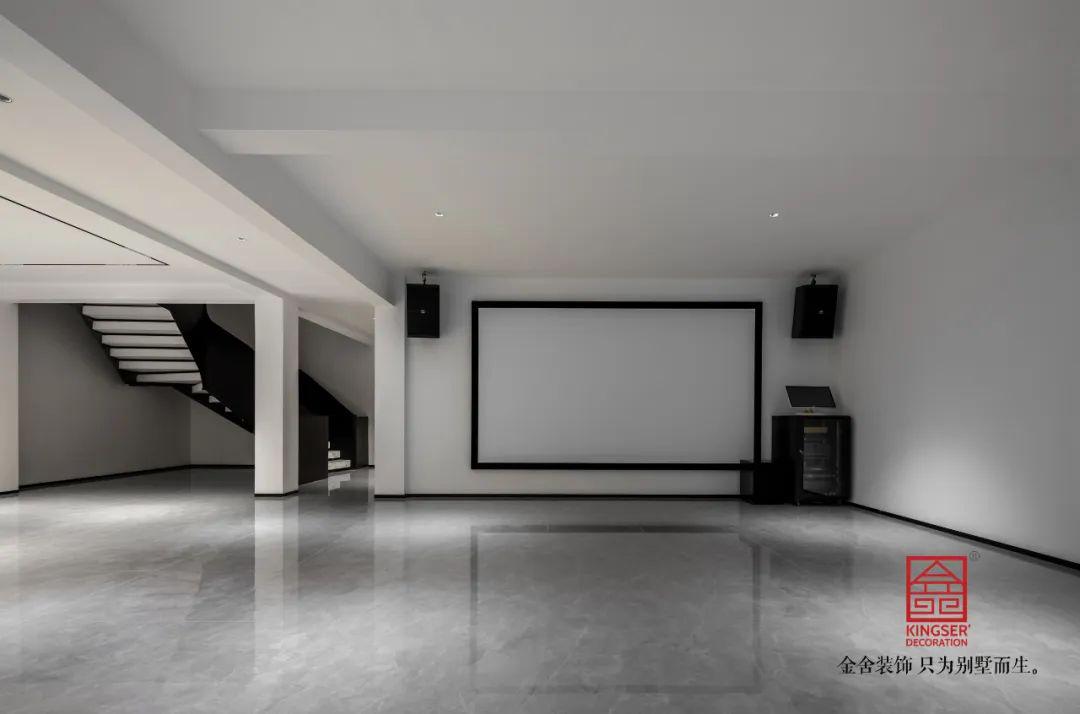 負(fù)一影音室延續(xù)了整體空間配色,就好像是正在繪制的漫畫,黑與白此時(shí)正在交替的創(chuàng)造著美與和諧。