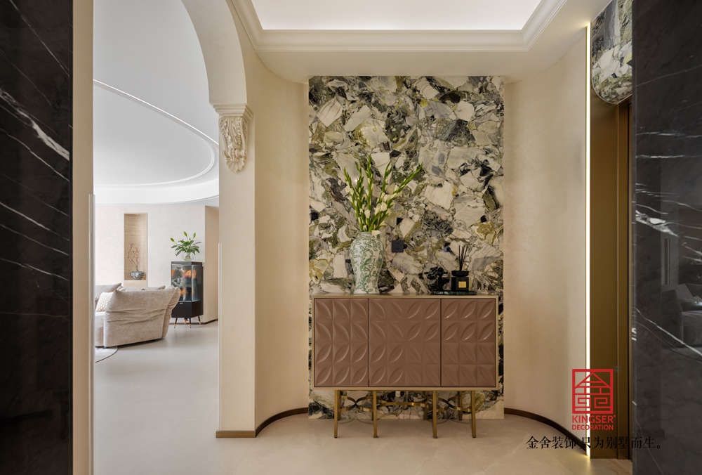 空間的每處設(shè)計(jì)細(xì)節(jié)皆源自自然草木的呼吸,每一寸材質(zhì)肌理皆訴說(shuō)城市生活的故事。在這里,自然不再是背景,而是空間的主角;奢華不再是堆砌,而是與人文共鳴的詩(shī)意棲居。