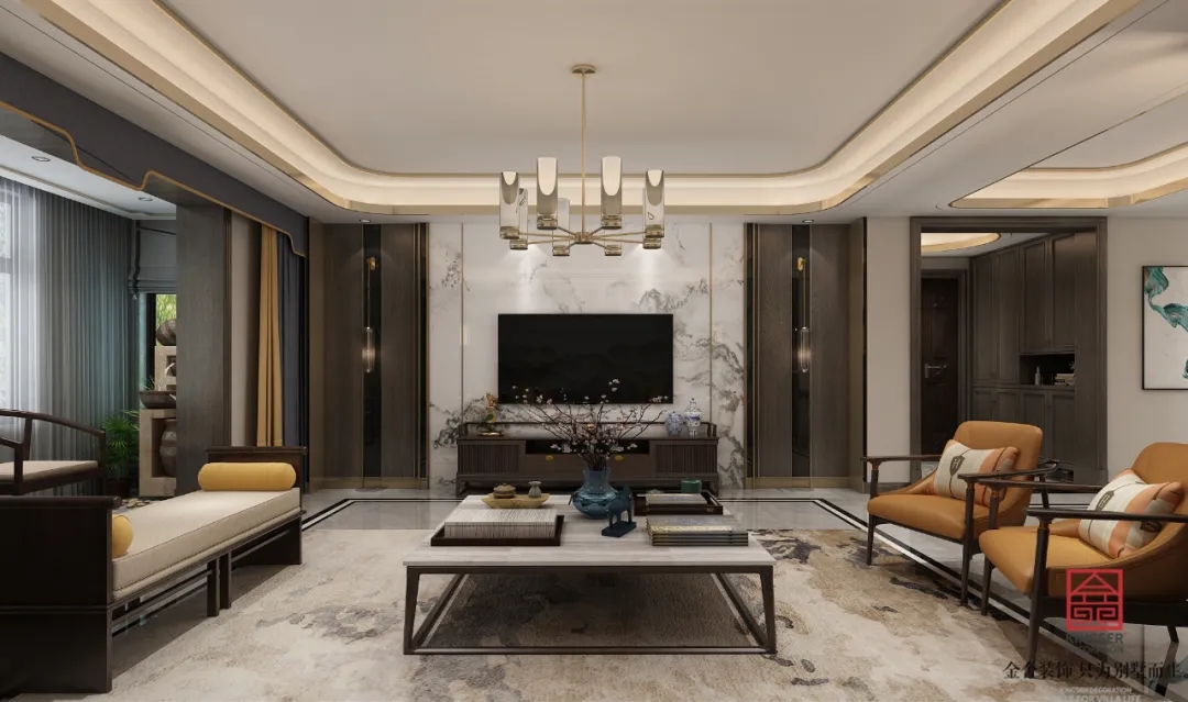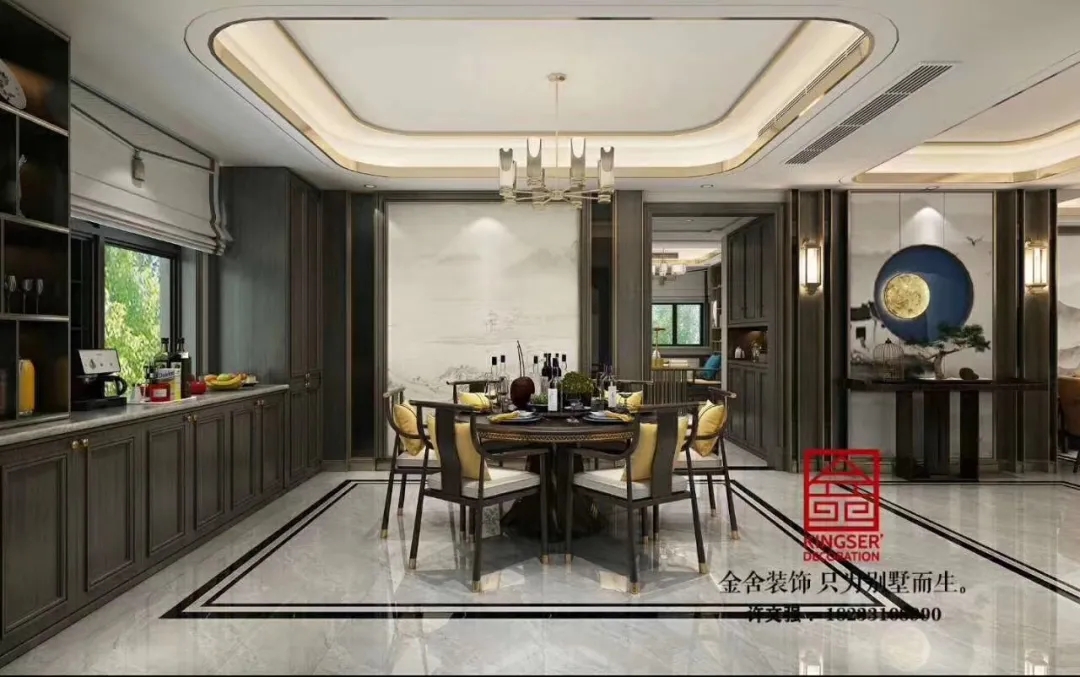 此案例為石家莊金舍裝飾-榮盛華府215平米新中式風(fēng)格裝修案例。新中式風(fēng)格傳承了傳統(tǒng)中式風(fēng)格的文化底蘊(yùn),又將現(xiàn)代審美融入其中,將含蓄內(nèi)斂的美學(xué)韻味徐徐呈現(xiàn)在了眾人面前,令人沉醉、留戀。似有靜謐、似含古韻,思想不禁浮想聯(lián)翩,無(wú)法掩飾一個(gè)人的精神世界,是心靈和性情的外化之地。中式元素與現(xiàn)代材質(zhì)搭配,既有文化的傳承又不會(huì)全盤(pán)固守傳統(tǒng),是現(xiàn)代的思想與千年來(lái)的文化彼此融合與碰撞。
