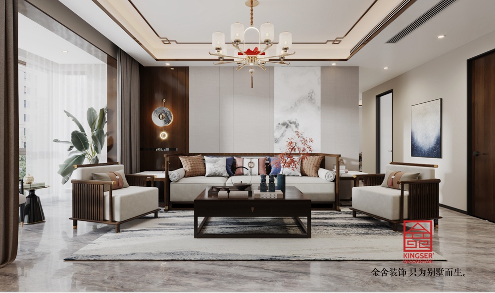 大面采光結(jié)合輕紗窗簾,讓自然光輕柔灑落,與室內(nèi)的綠植、掛畫等相互映襯,營(yíng)造出 “天人合一” 的意境,打造出一個(gè)既有傳統(tǒng)文化底蘊(yùn),又符合現(xiàn)代生活需求的舒適居所。