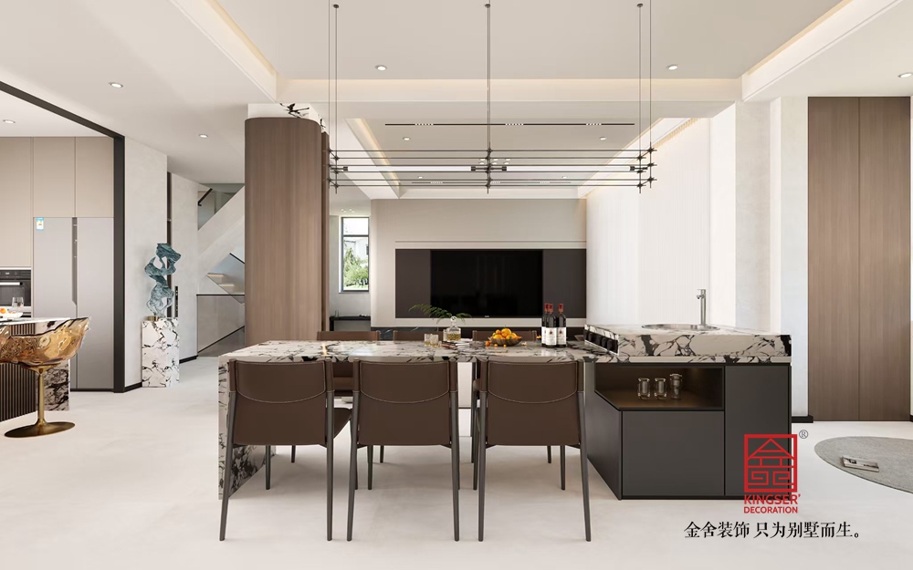 設計說明:該客廳以 “極簡美學與輕奢質感的共生” 為設計理念,從空間布局、材質運用到細節(jié)塑造,展現(xiàn)出別墅生活的雅致與舒適。