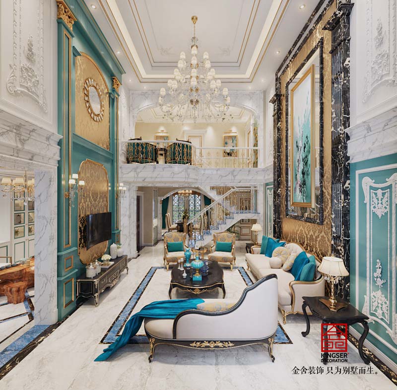 榮盛華府美式輕奢風(fēng)客廳裝修效果圖