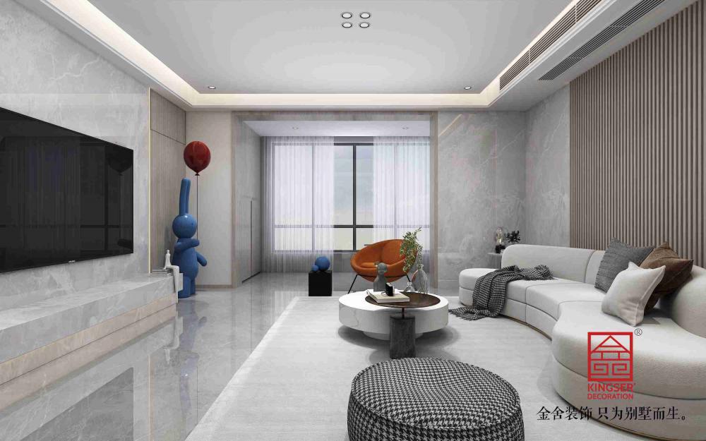 榮盛華府190平米現(xiàn)代極簡風(fēng)格裝修-客廳