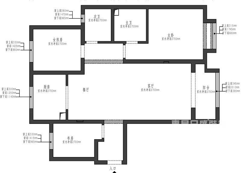 此戶型方正,南北通透,通風采光比較好,空間分隔合理,廚房門口擴大,使利用空間更大,更好的增加通風和采光,主臥的飄窗拆除,使主臥空間變大,顯得不是很擁擠,給人一個舒適的居住空間,采用用本公司香草天空的衣柜,使整個空間更加美觀,從而也增加了室內的儲物空間,也使室內更加干凈整潔。