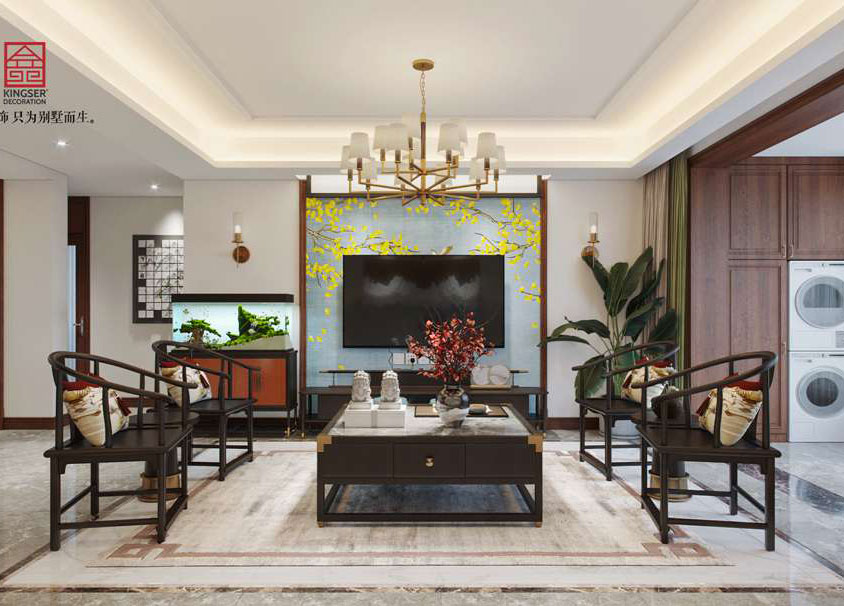 此案為金舍裝飾-維多利亞186平米新中式風格裝修效果圖。定位為新中式裝修風格,布局上遵循了中式風格中對稱的布局方式,講究空間的層次感和沉穩(wěn)感。整體色彩以米黃色為主,去營造一種溫馨舒適但不沉悶的氛圍感。