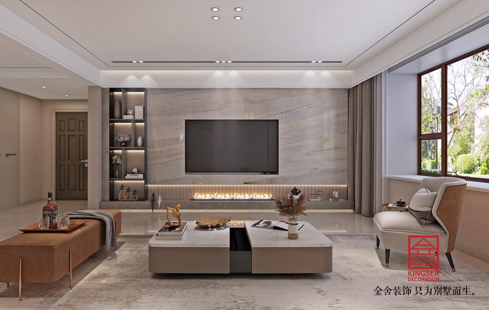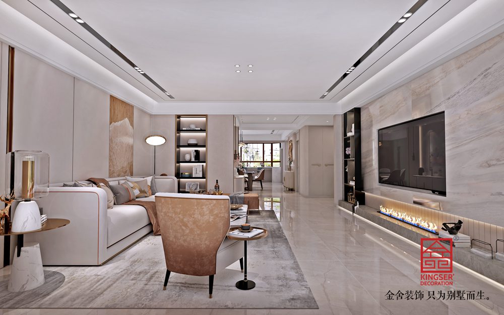 此案例為石家莊金舍裝飾-榮盛華府213平米輕奢風格裝修效果圖。輕奢是一種格調(diào)風尚,是一種極減的風格不是鋪排和堆積,是用極少的物質(zhì)和人力,做出高,大,上的規(guī)格,給人們的視覺上帶來清新,簡潔,高雅,極貴的感受。輕奢是設計的一種路線和風格,以簡勝繁,以少勝多,達到出奇制勝的效果。