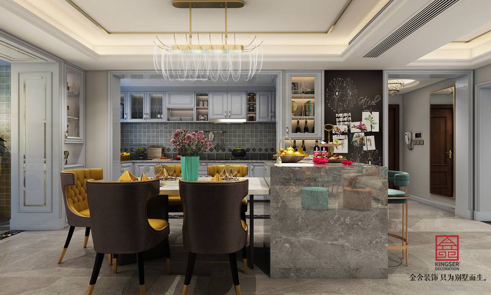 此方案是石家莊裝修公司-健康城160平米美式風(fēng)格裝修效果圖。以美式輕奢定義的一種風(fēng)格,美式輕奢在生活方式上延續(xù)了美式風(fēng)格的輕松自由,又添加了一些當(dāng)代元素。本案在裝飾手法上巧妙的運(yùn)用了啞光的復(fù)古磚,隔斷玫瑰金不銹鋼,簡(jiǎn)單的美式線條等來(lái)提升質(zhì)感。以藍(lán)灰色為主調(diào),超脫凡俗的藍(lán)灰調(diào),將小資情調(diào)流露,彰顯輕奢大氣。入戶玄關(guān)開(kāi)闊明亮,以灰藍(lán)色搭配著深色瓷磚做對(duì)比和呼應(yīng),簡(jiǎn)潔的鋪貼與屋內(nèi)美式輕奢氛圍呼應(yīng)本案例,在看似漫不經(jīng)心卻故意營(yíng)造著一種十分溫和的輕奢表達(dá)。