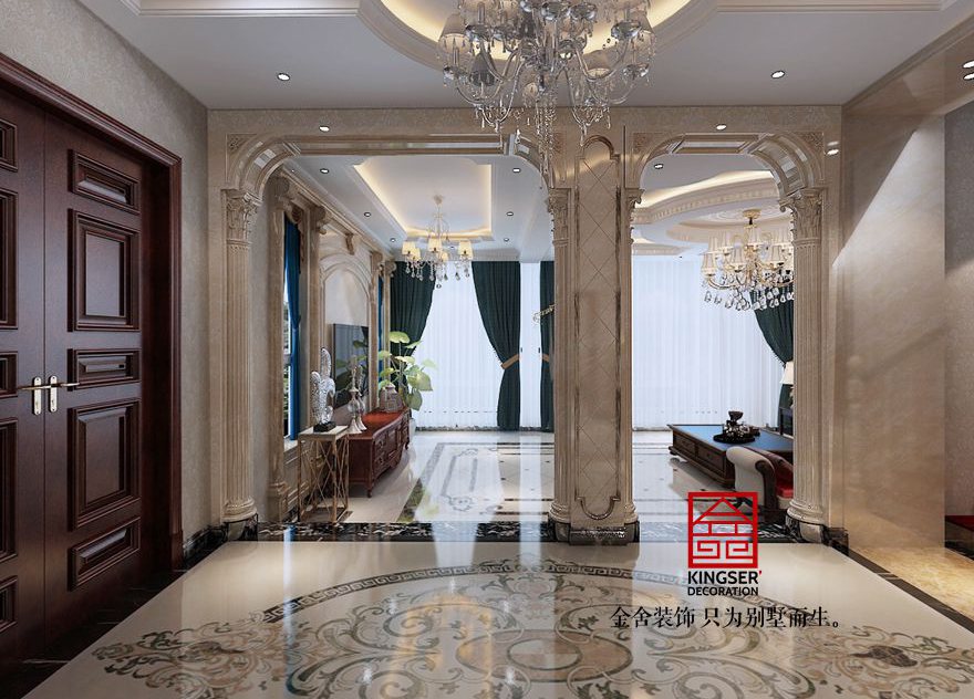 案例說(shuō)明:此案例為石家莊金舍裝飾-歐式的居室不只是豪華大氣,更多的是愜意和浪漫。完美的典線,精益求精的細(xì)節(jié)處理,給人帶來(lái)不盡的舒服觸感,實(shí)際上和諧是歐式風(fēng)格的最高境界。歐式強(qiáng)調(diào)以華麗的裝飾、濃烈的色彩、精美的造型達(dá)到雍容華貴的裝飾效果。歐式客廳頂部喜用大型燈池,并用華麗的枝形吊燈營(yíng)造氣氛。門窗上半部多做成圓弧形,并用帶有花紋的石膏線勾邊。入廳口處多豎起兩根豪華的羅馬柱,室內(nèi)則有真正的壁爐或假的壁爐造型。還有浪漫的羅馬簾,精美的油畫,制作精良的雕塑工藝品,都是點(diǎn)染歐式風(fēng)格不可缺少的元素。
