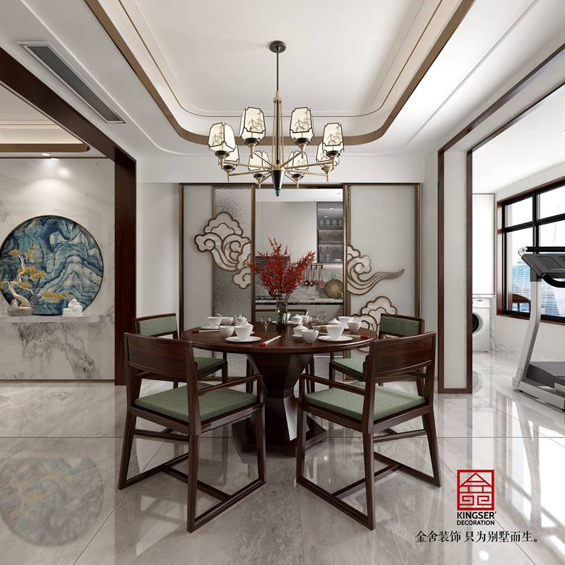 當(dāng)前位置: 首頁 > 裝修案例 > 裝修圖庫 > 榮盛華府190平方江南新中式餐廳裝修設(shè)計